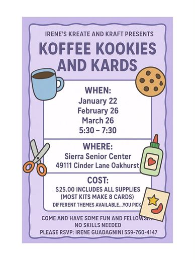 Join Irene’s Kreate and Kraft for a cozy evening of creativity, coffee, and cookies! Come make beautiful handmade cards in a relaxed, welcoming atmosphere—no experience needed.
