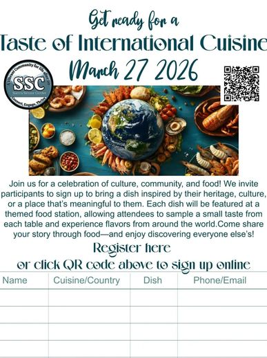 Participants are invited to bring a dish inspired by their heritage, culture, or a place that’s meaningful to them. Each dish will be featured at a themed food station, giving everyone the chance to sample a variety of global flavors and share stories through food.