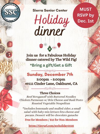 Join us for the Holiday Boutique at the Sierra Senior Center on Saturday, November 29th, 2025 from 10 AM – 3 PM! 🛍️